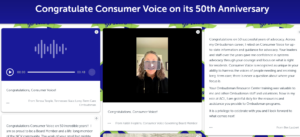 Join other advocates, partner organizations and Consumer Voice supporters in celebrating our 50th Anniversary by making a donation of $50 in honor of Consumer Voice’s 50 Years. Then, post a congratulatory message on our Kudoboard. Leave a text, audio, or video message.